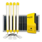 The system features four tube lights with a total output of 960 lumens that can be linked to illuminate multiple rooms. It also features a battery control unit and a 13 W solar panel. Each tube light has three different brightness modes, individually adjustable via a wall-mounted switch.